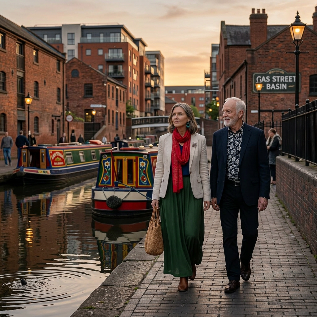 As they walk past the brightly painted canal boats there is a comfortable silence in their proximity. They reach the bridge leading to the Symphony Hall.